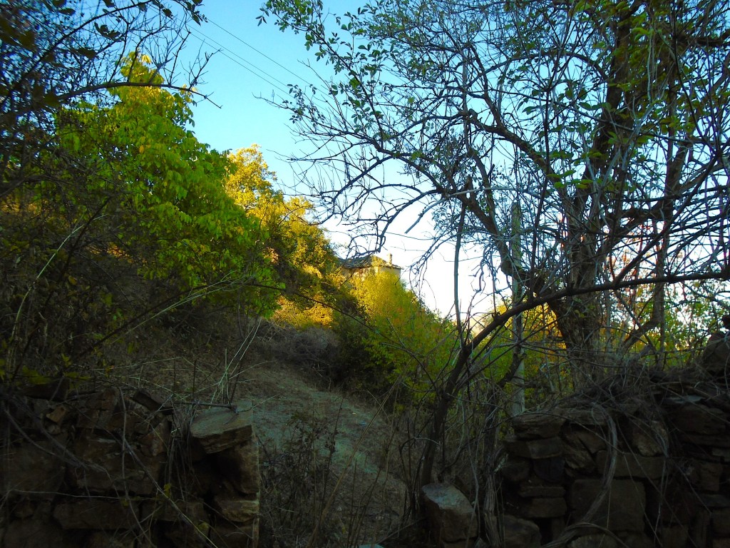 The road is a few meters below the plot and you can just make out my car. A worker lives in the village, is currently building a house, and would be happy to build you a house as well.