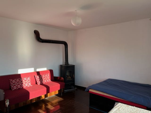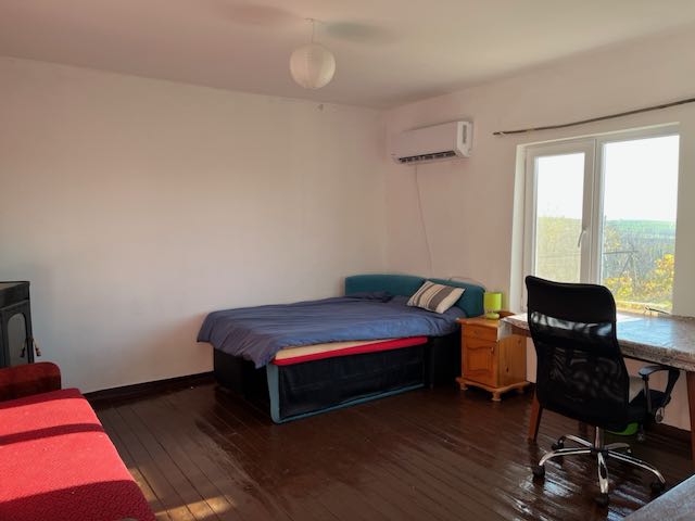 South facing bedroom 2, has an air conditioning unit for hot summers and a wood burner for winter. This room was also used as an office and social area.