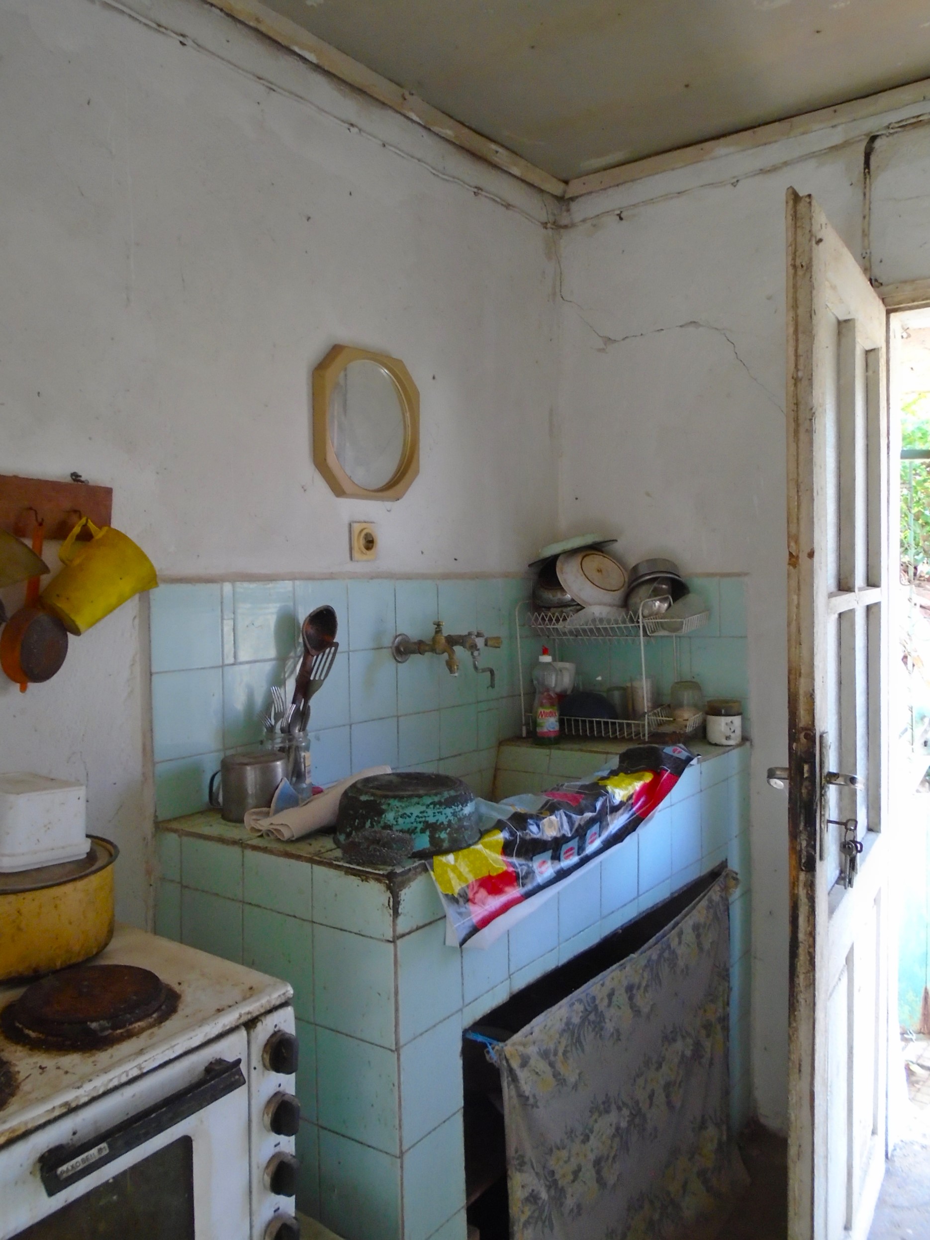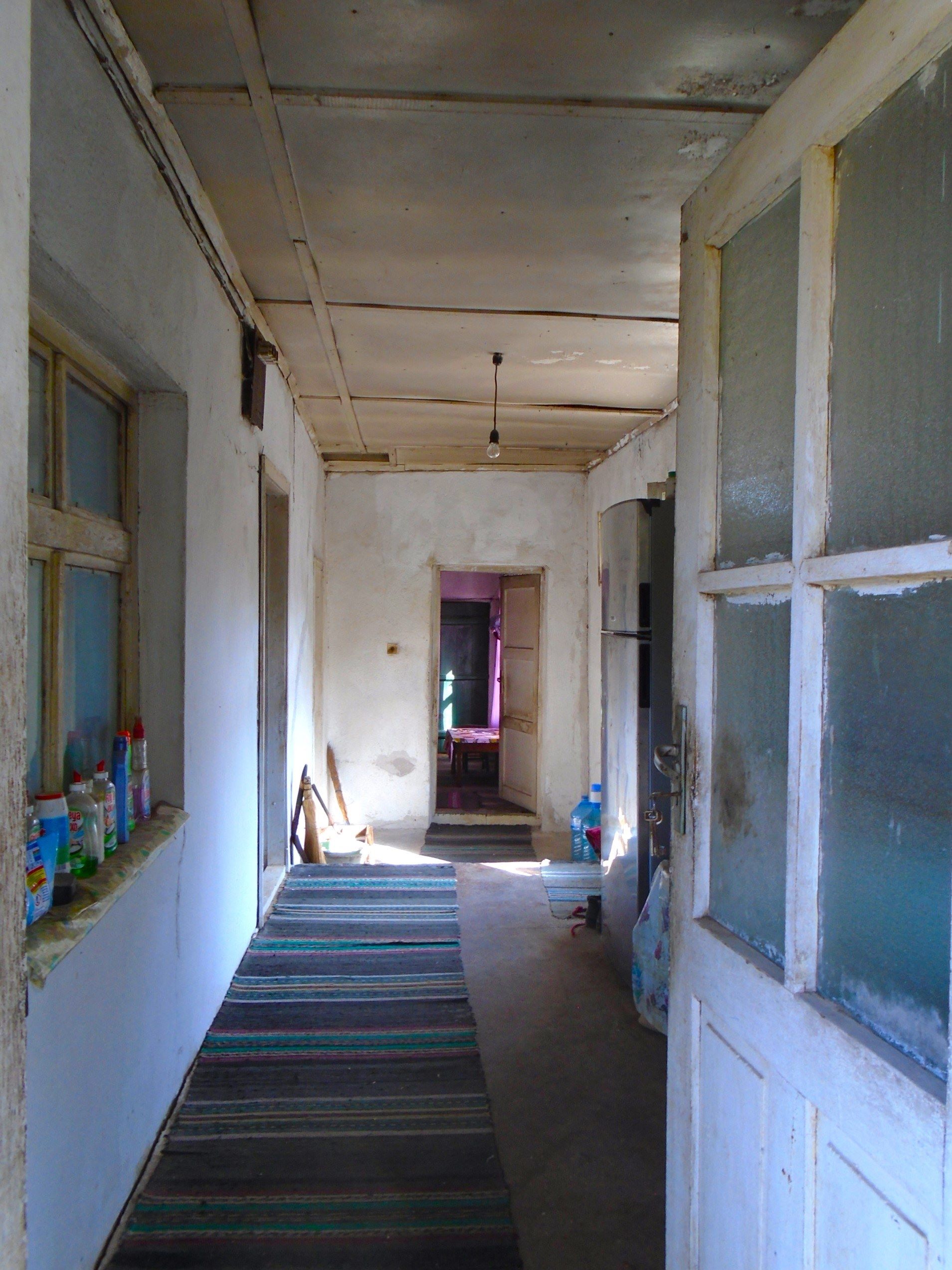 Enter into a long corridor that was used as the kitchen. The large window faces East and and a new PVC window will increase light to this room.