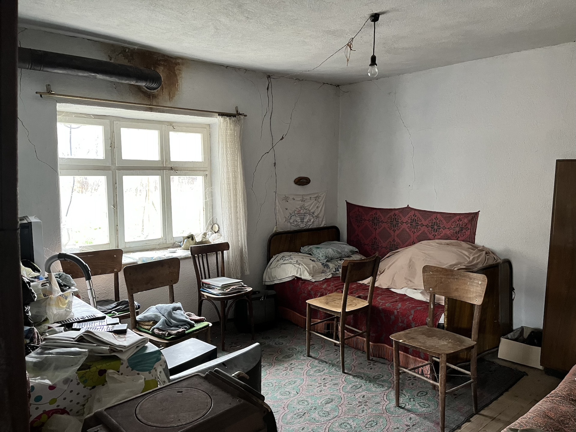 3 rooms open from the corridor. The front room faces south into the courtyard. The Rear room connects to the old bar. All with wooden floors, doors and window frames. There are 2 wood burners for heating and cooking, an electric stove and various furniture.