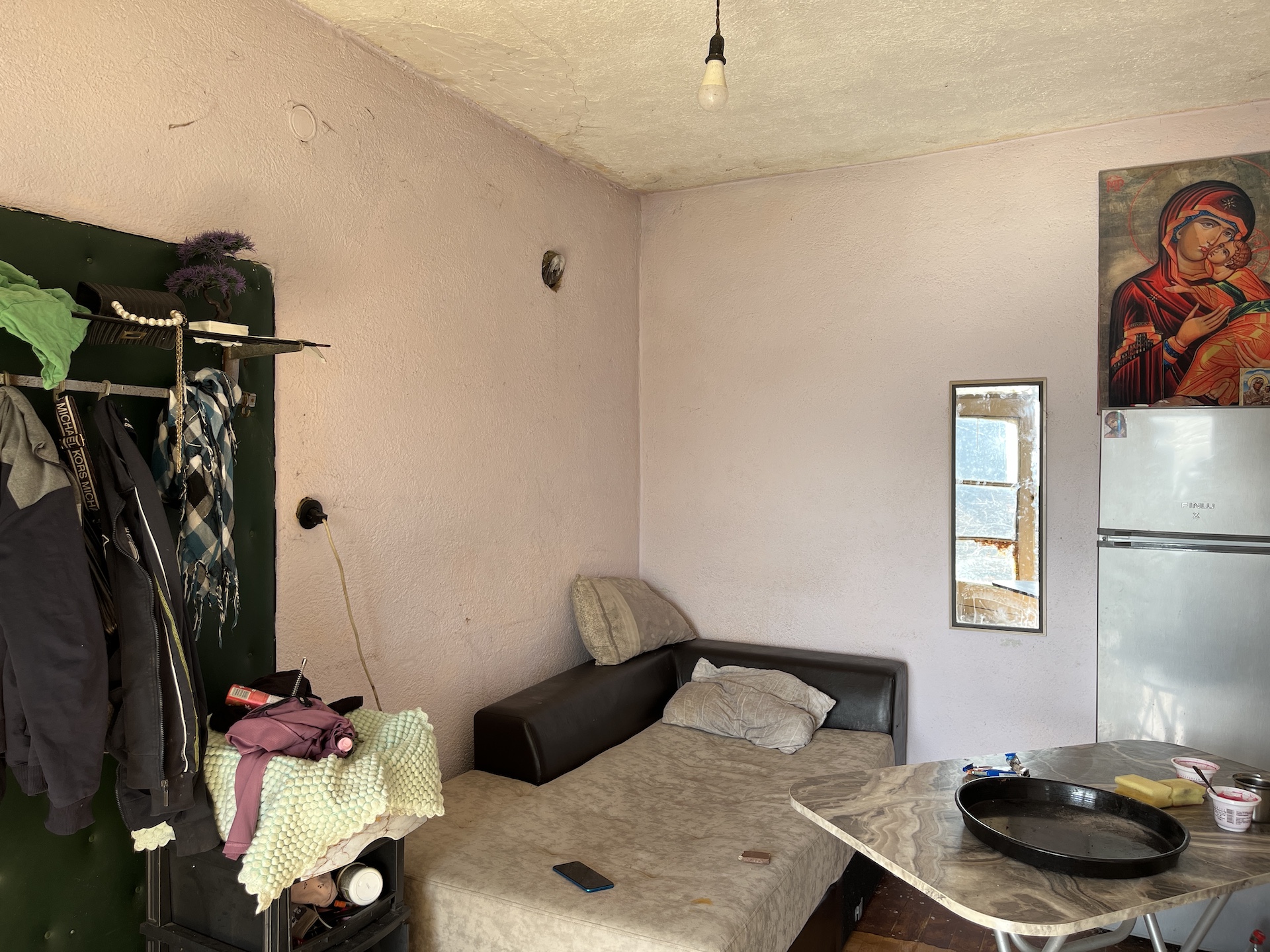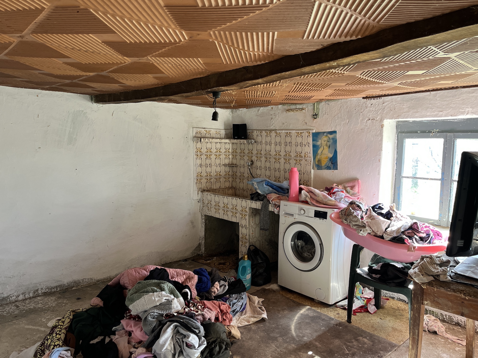 In one room is an internal sink and drainage to soak away. Outside in the courtyard in an external sink. Both are supplied by village water.