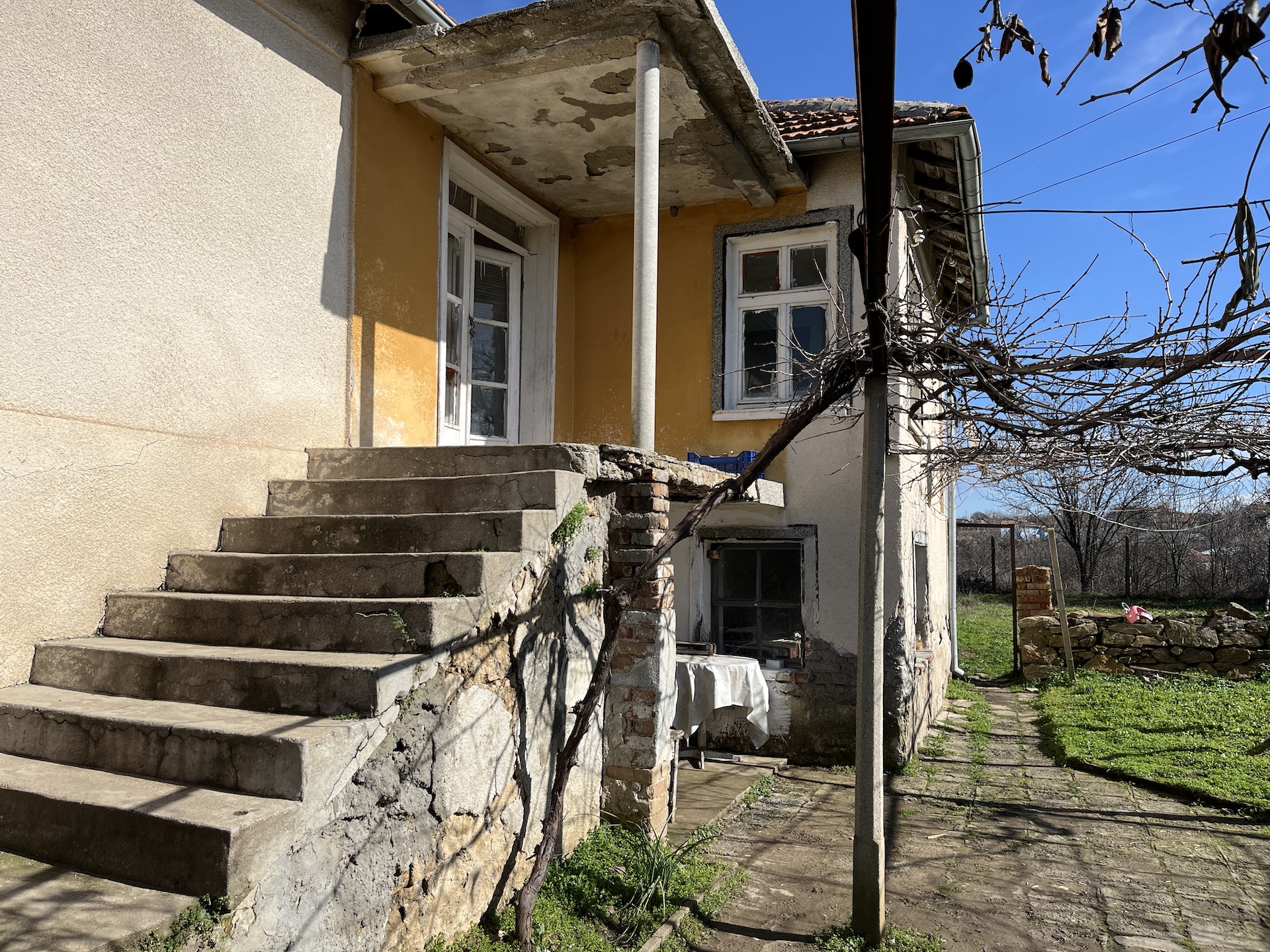 This delightful 2 floor house is up a quiet, dead-end lane in Oryahovo, South East Bulgaria. The village has very little traffic anyway and there is even less on this road.