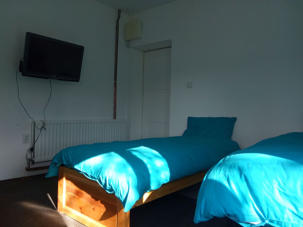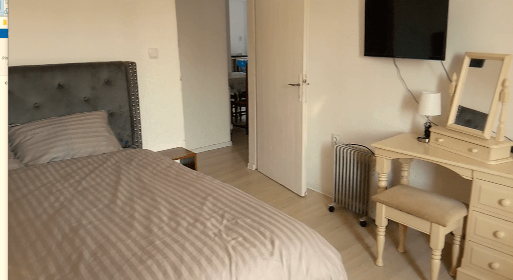 The second bedroom also has a television. Wall radiators throughout the apartment are plumbed to a central heating boiler system, heated by a woodburner on the lower floor, so can only be in operation when the owner is in residence. Though radiators are not necessary from Spring to Autumn.