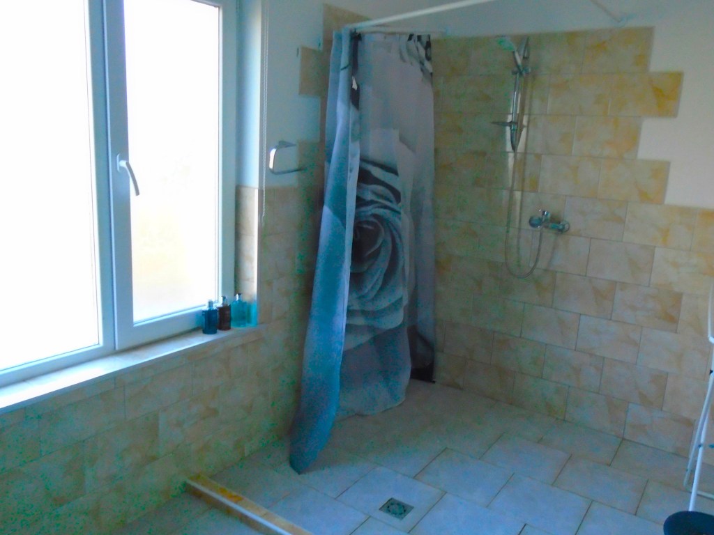 Hot water is supplied from a new electric boiler to shower and sink and there is a modern flushing toilet.
